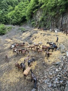 The big horse herd Migration process from Vashlovani to Tusheti national park
